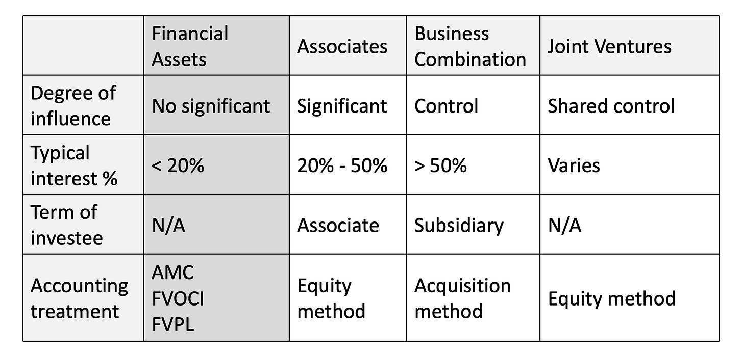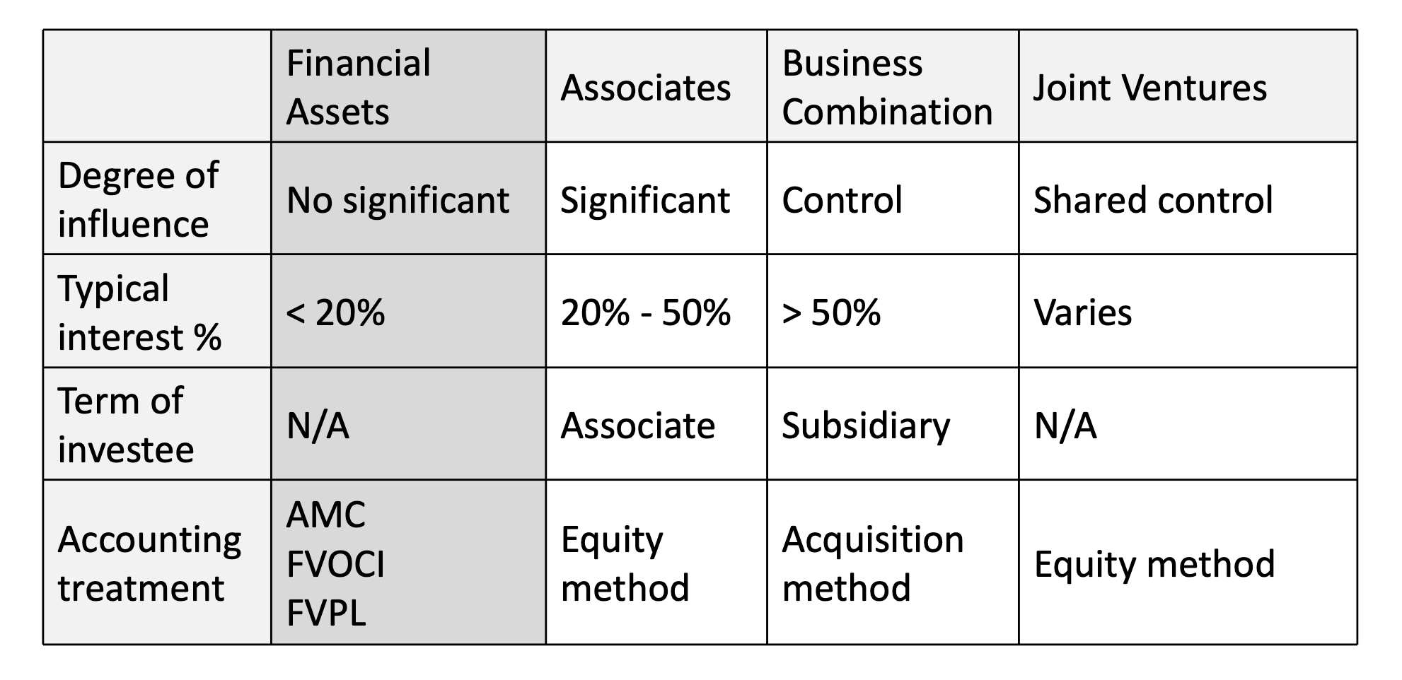 會計準則(IFRS 與 US GAAP)主要依據投資者的影響力進行分類:
