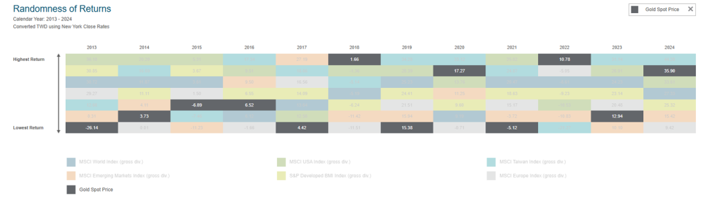 3. 儘管回報極低,黃金仍是圖表上「不可或缺」的一員