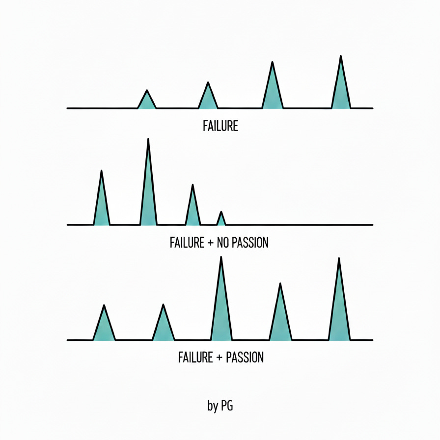 如果我們在面對這些失敗時失去了熱情,那麼這些山峰雖然存在,卻無法被轉化為任何有意義的進展。熱情的缺失,讓失敗變成純粹的停滯,無法累積經驗或帶來成長。