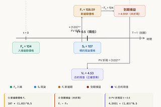 一位投資者以 104 的價格買入一份 1 年期期貨合約,該合約將於 6 個月後到期。